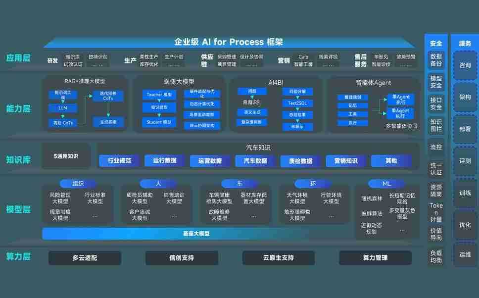 端到端的一站式AI工作空间深度融合了从企业战略规划到日常经营的全流程业务板块,,,定向解决车企内部领域多、、、部门多、、链条长、、场景碎片化等难题,,,支持车企快速构建以AI为核心的生产力写作体系,,实现任务执行与AI能力的无缝集成与交互